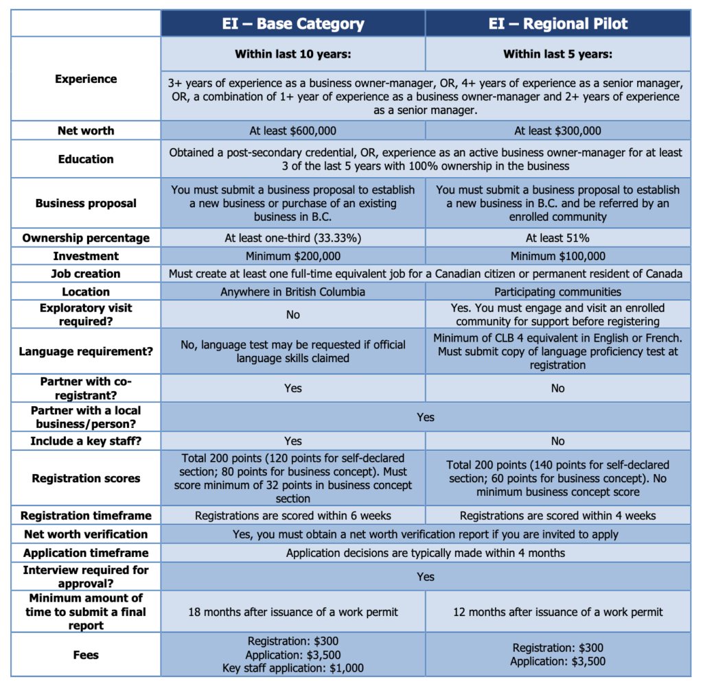 ۳- قصد گرفتن ویزای دایم راداشته باشند.لازم به گفتن است که هر استان برای خود هدفهای خاصی رادر زمینه های دانشجویی و ایجاد کسب و کار دنبال دنبال میکند. برای استانی بریتیش کلمبیا. برای این منظور میتوانید جدول زیر را مطالعه کنید و یا باما تماس بگیرید.